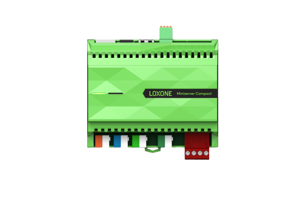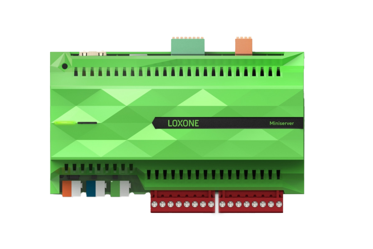 Loxone Miniserver. A vezérlés „agya”. Ezzel az eszközzel az épület vezérlése kényelmes, biztonságos és energiatakarékos lesz. Az eszközön futó program látja el a vezérlési feladatokat, az egyszerű világításvezérléstől kezdve, az árnyékolástechnikán át, az öntanuló fűtésvezérlésig. A különboző kiegészítők ehhez az egységhez kapcsolódnak